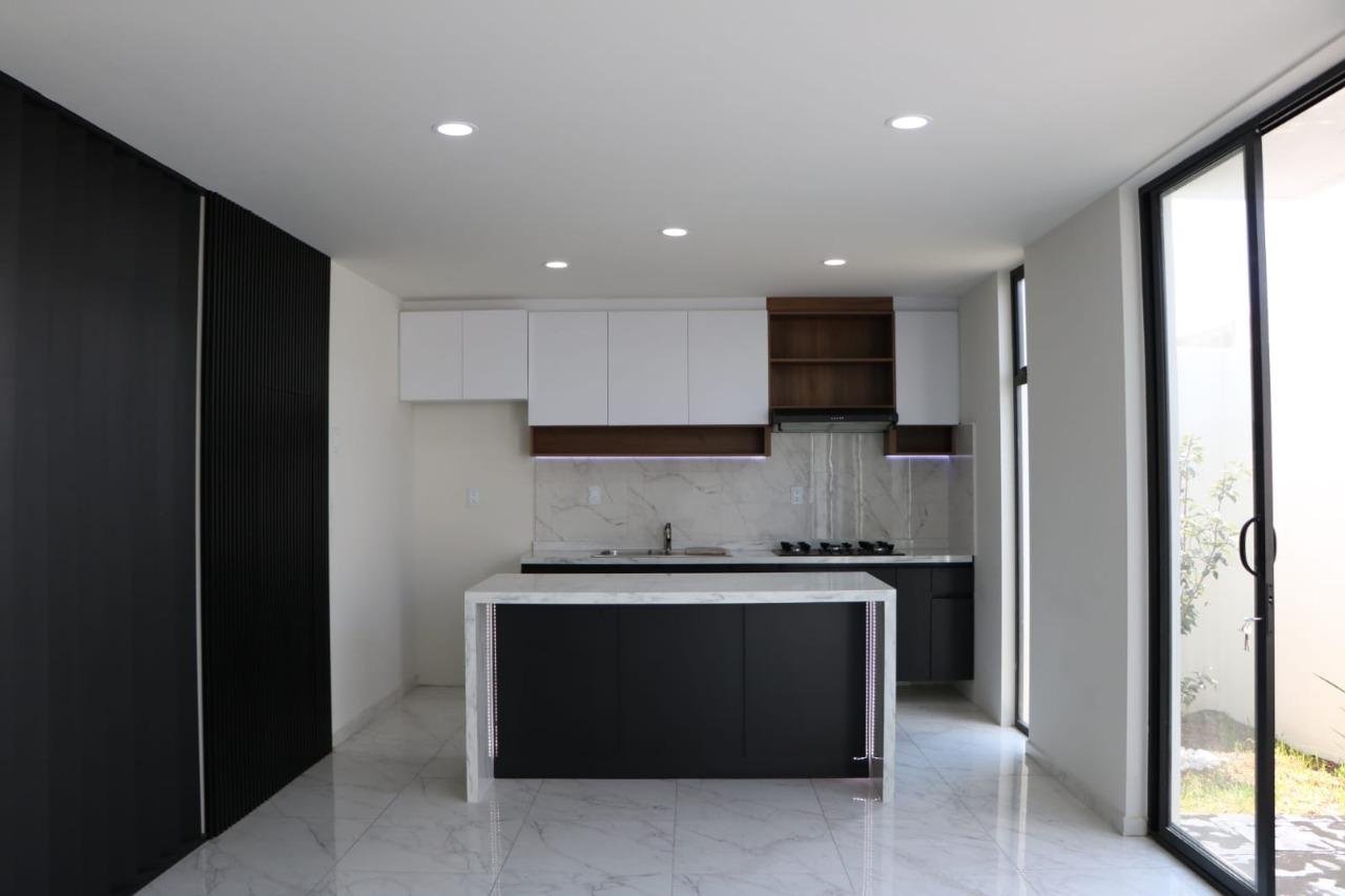 Descripción: $15,000 120m2 de terreno 242m2 de construcción 3 Recamaras (la principal con baño completo, vestidor y terraza) Baño completo Sala Comedor Cocina equipada Baño para visitas en areas sociales Roof Garden Area de lavado Cisterna 5,000 litros *Iluminacion afuera en fachada *Instalacion electrica con opcion a colgar candelabros en comedor y escaleras *Luminarias en recamaras para cada buro
